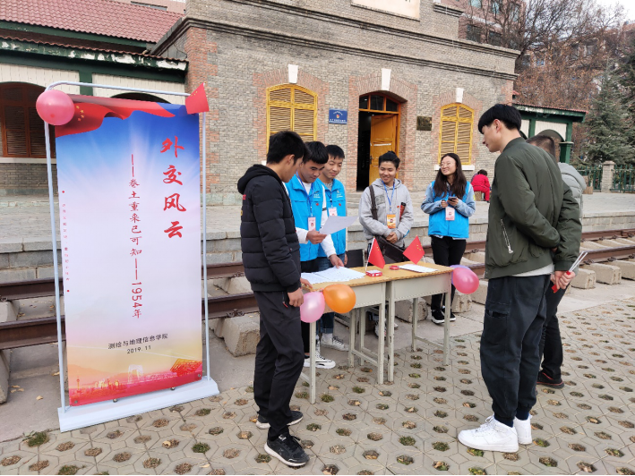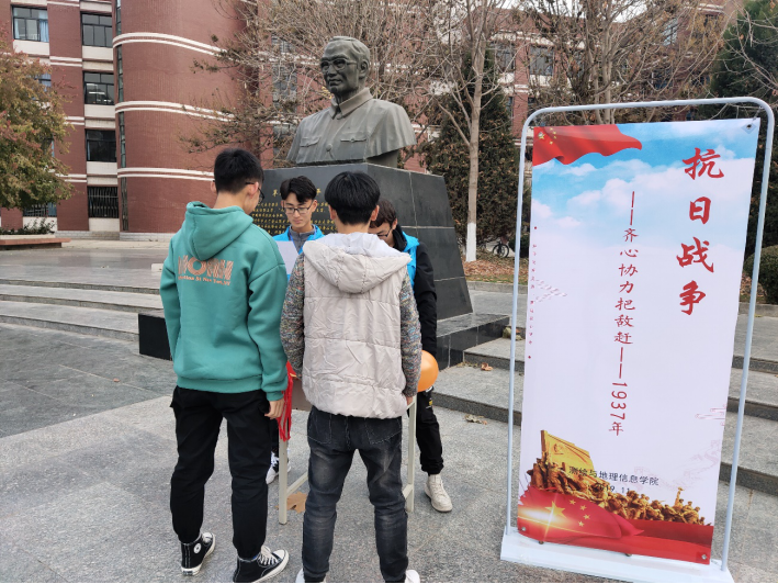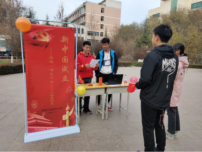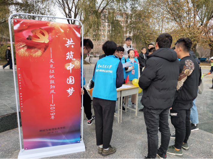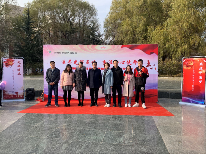 为进一步增强基层党组织党员学习意识,创新学习载体,增强学习实效,将“不忘初心 牢记使命”主题教育工作落到实处,11月22日下午,学院在八教唐臣广场组织开展“追寻光辉足迹、重温初心使命”——主题教育学习打卡主题党日活动。学校纪委书记范爱国、纪委综合科科长王泊钧出席了此次活动,学院主要负责人及相关老师、研究生党支部、测绘党支部、地信党支部、遥感党支部共70余人参加了此次活动。