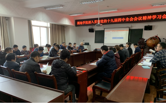 为深入学习宣传贯彻党的十九届四中全会精神,动员学院师生把思想和行动统一到全会精神上来,根据学校党委工作安排,11月21日下午测地学院召开深入贯彻学习党的十九届四中全会会议精神学习会,进一步深入学习宣传贯彻落实全会精神。