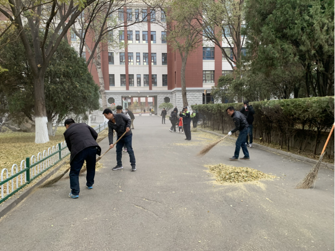 时值深秋,天气转冷,飘飘洒洒的落叶为秋季增添了几分诗意,但厚厚的落叶也给师生们的出行和安全带来了很多不便。在明确任务分工后,教师们纷纷拿起扫帚、簸箕等工具在校园内进行道路清扫。归拢落叶,清理碎土石,干劲十足,相互配合,认真清扫路边的落叶,在实践中汲取初心养分。经过教师们的辛勤劳动,校园道路变得焕然一新。