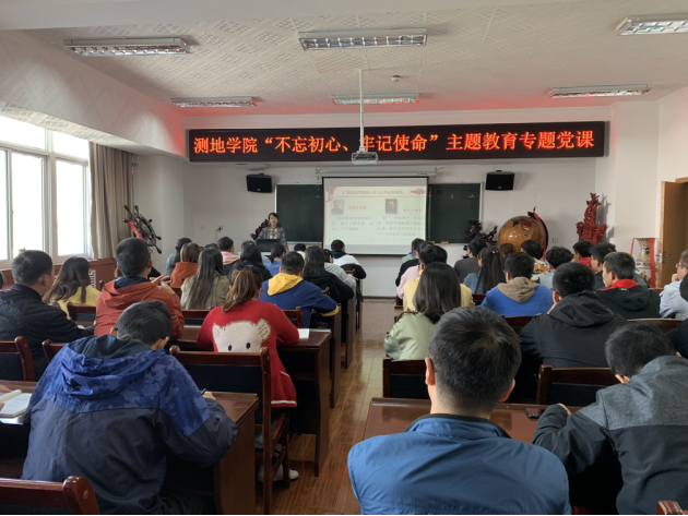 根据学校“不忘初心,牢记使命”主题教育工作安排,10月17日下午学院组织开展了“不忘初心、牢记使命”主题教育专题党课,冯鑫书记结合前期集中学习和基层调研情况,围绕“中国共产党的初心与使命”主题讲授了专题党课,教工一支部、测绘支部、遥感支部全体党员参加了党课。