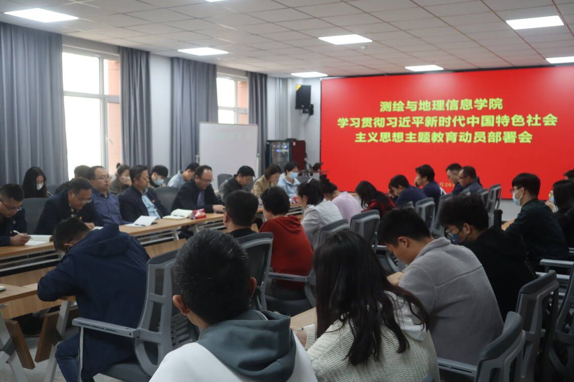 为贯彻落实党中央关于开展学习贯彻习近平新时代中国特色社会主义思想主题教育的部署要求,根据学校党委的部署安排,测绘与地理信息学院于2023年4月20日召开学习贯彻习近平新时代中国特色社会主义思想主题教育动员部署会议。会议由学院党委书记张立峰主持,学校第五巡回指导组副组长孙建国到会指导并讲话,学院全体教职工党员、各党支部支委、党员代表、群众代表参加了会议。