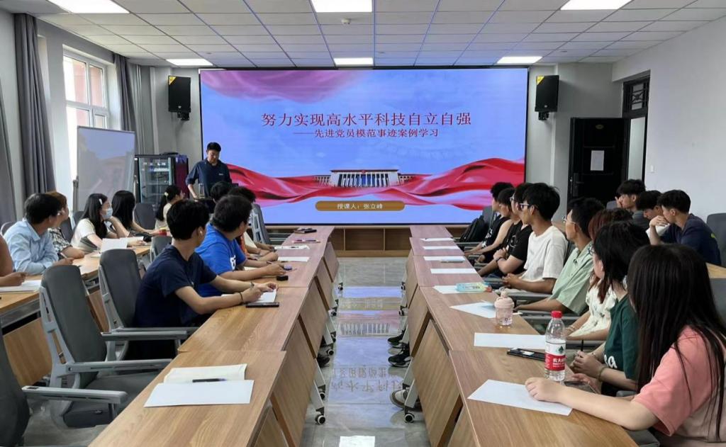 在党课学习中,学院党委书记张立峰从努力实现高水平科技自立自强的角度出发,领学了习近平总书记关于科技创新的重要论述,号召同学们向科技领域党员先锋模范人物学习,并强调坚定理想信念的重要性,鼓励党员同学在学习和工作中发挥先锋模范作用,提高自身素质,加强党性修养,争做一名优秀党员;常务副院长杨树文引导大家深入领会革命精神和优秀传统,坚定理想信念,强调了坚守初心、踔厉奋发的重要性,要始终保持对党的忠诚,坚持正确的政治方向;学院党委副书记郝雪莹系统介绍了中国共产党指导思想的发展及其重要启示,并强调了这些思想在党的历史发展中的地位和作用,带领学生党员重温党的红色印记,锤炼对党忠诚的政治品格,鼓励青年党员为实现下一个百年奋斗目标,实现中华民族伟大复兴的中国梦而努力奋斗。工程中心副主任周亮要求党员同学们要积极作为,面对问题不逃避,不拖延,党员要身先士卒,迎难而上,要意识到自己的责任,在力所能及之处贡献力量。