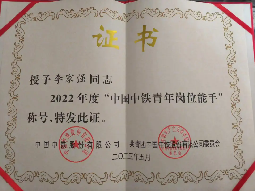 在训练的日子里,李家强流汗水、花心思是最多的,“有心人,天不负”,最终他荣获“中国中铁技术能手”称号。