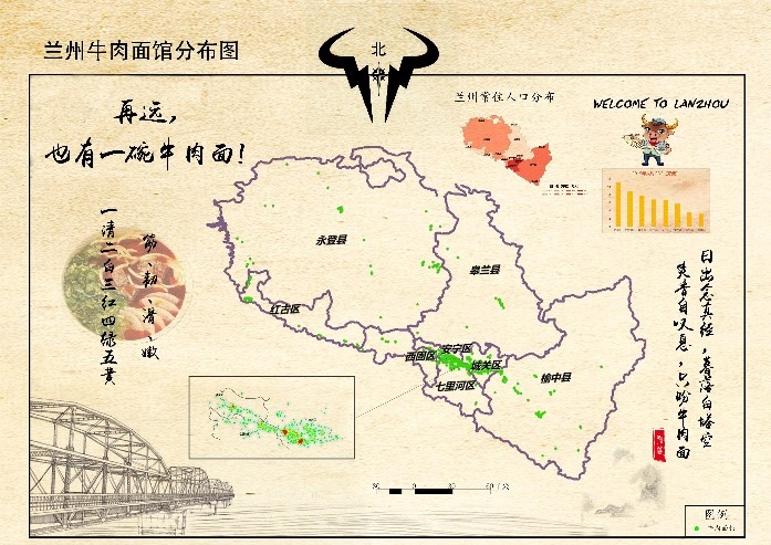 10月27日,由中国地理学会、中国地理信息产业协会、北京超图软件股份有限公司联合举办的第18届SuperMap杯高校GIS大赛圆满落下帷幕。在我院段焕娥老师的带领下,贺鹏程、王娅玲、赵康花、叶生旭四名同学的作品——《兰州牛肉面馆分布图》,荣获制图组优胜奖。这不仅体现了同学们的扎实的专业知识以及素养,更彰显了测地学子热爱生活,关注民生的精神风貌。
