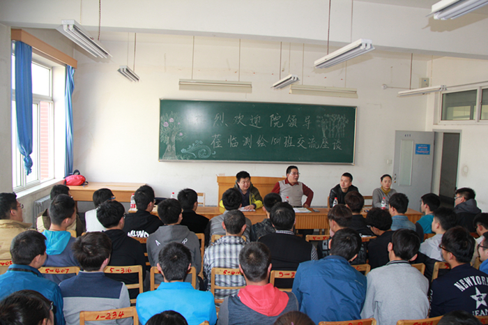 座谈会上,学院领导与学生充分交流座谈。李仲勤书记以测绘工程专业形成背景为引,通过系统详细的介绍测绘工程专业应用领域、测绘单位分布状况、专业就业方向,完整的解答学生专业就业困惑。
