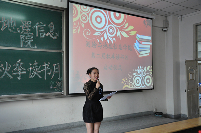 金秋送爽,雁过留声。测绘与地理信息学院在八教A座1523教室举办了“2015秋季读书月”启动仪式。学院书记李仲勤老师,副院长金江磊老师,团委书记曹铎老师共同出席了启动仪式。