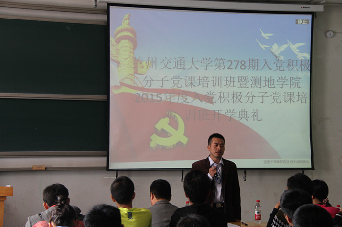 为提高学院学生的政治思想观念和科学文化水平,让学生深入了解中国共产党,积极向党组织靠拢,培养优秀人才, 10月22日下午,我院举办了第278期入党积极分子党课培训班暨测地学院2015年度入党积极分子党课培训班开学典礼。