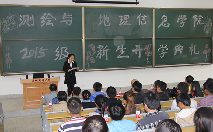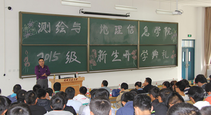 伴随着嘹亮的国歌声,15级新生开学典礼拉开帷幕。闫浩文院长首先致辞,他代表学院向新同学的到来表示热烈的欢迎,并介绍了学院的基本情况,同时希望同学们在未来的四年里,放飞梦想,绽放精彩。随后,遥感系段焕娥老师作为教师代表发言,她鼓励新生满怀热情,坚定信念学好专业知识,以饱满的姿态迎接大学生活。新生代表遥感2015级刘金廷在发言中表示,自己会和同学们一起严于律己,学会学习,学会生活,不辜负学院领导和老师们的期望。测绘2014级吴梦瑶代表在校生发言,她结合自身在校学习生活的经验,建议新生珍惜大学的青春时光,不迷惘不彷徨,找准属于自己的位置,早日形成自我教育、自我服务、自我管理的良好习惯。