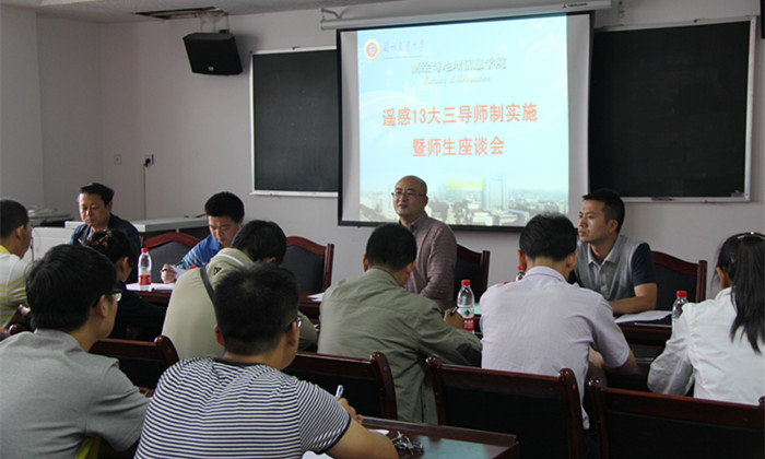 9月8日下午,遥感13大三导师制实施暨师生座谈会在我院学术厅召开。学院院长闫浩文,副院长韩峰、金江磊,地信系教师张黎明、测绘系教师李建章、遥感系全体教师以及遥感13班全体同学参加了会议。会议由遥感系主任杨树文主持。
