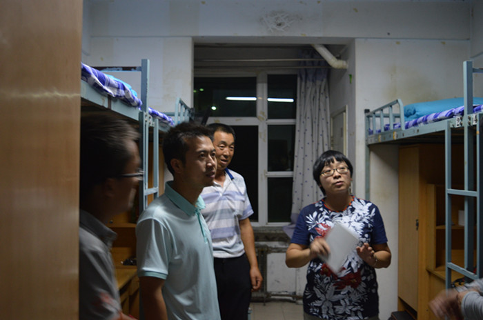 8月31日晚,我院副院长金江磊带领学工办负责人、新生班主任、辅导员依次深入东方公寓34个男生宿舍、桃海公寓8个女生宿舍开展新学期首次宿舍走访检查。