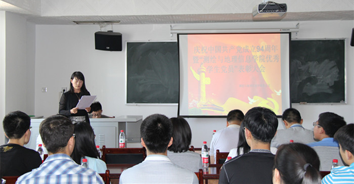会上,首先奏响《中华人民共和国国歌》,在歌声中寄托了全院师生对中国共产党成立94周年的美好祝福。接着,学工办主任李艳梅老师宣读了《测绘与地理信息学院党总支关于表彰优秀学生共产党员的决定》,并希望获奖的优秀学生共产党员,能够切实发挥“传帮带”作用,带领全院学生共同进步。学院领导为优秀学生共产党员颁发了荣誉证书和纪念品。随后,优秀学生共产党员代表发言,表示会珍惜荣誉,再接再厉,不负厚望,继续发挥战斗堡垒作用和先锋模范作用。
