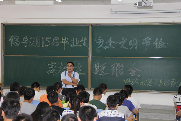 “待到凤凰花开季,惟愿前程皆似锦”。616日,测地学院召开2015届毕业生“感恩母校 文明离校  扬帆起航  筑梦未来”离校暨安全、文明、节俭教育主题班会,学院党委负责人出席并对毕业生提出了要求。