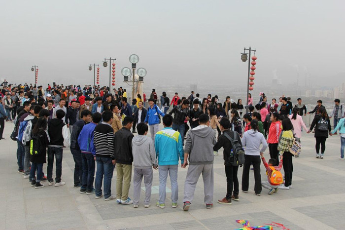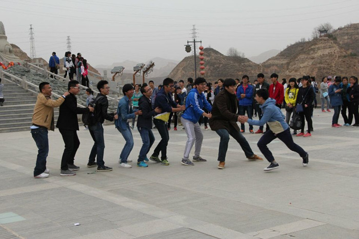 经过两个小时左右,第三小分队率先爬至山顶,由李老师带队的第一小分队也紧随其上,陆续各小队也抵达山顶。大家虽都累出一身汗,却依然兴趣高涨,在此热烈的氛围下,我全体师生进行了合影留念,用相机记录下了这激动人心的一刻。接下来便到了举办趣味游戏的时间,班委分别组织了像“五毛一块男生女生连连看”、“疯狂测绘版小鸡啄老鹰”、放风筝等游戏,各式花样吸引了众多观看者,期间还有同学奉上劲歌热舞,加上老师的参与其中,完全与同学们打成一片的欢闹场面,更是引起了现场观众连连的尖叫声、喝彩声。在这一系列紧张又快乐的游戏中,真正加深了老师同学们之间的默契和感情,这是最大的意义所在。由于同学们积极投入,活动时间比预计延长了一些时间,直到中午一点,大家才依依不舍的分批次下山。