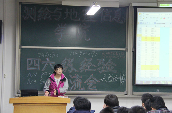 为提高同学们对英语四六级的认识,增强考试信心,11月19日晚,测绘与地理信息学院在八教1108教室举行了英语四六级经验交流会。本次交流会邀请到外语学院副院长柏桦老师亲临指导。