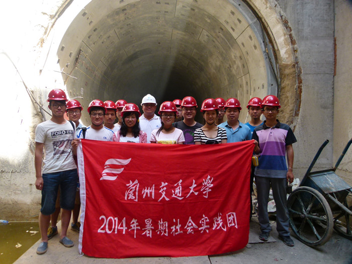 725日下午,顶着炎炎烈日,兰州交通大学测绘与地理信息学院2014年暑期社会实践团在副院长韩峰、团委书记曹铎的带领下一起来到位于安宁区的中铁建兰州市城市轨道交通1号线一期工程试验段进行社会实践。兰州轨道交通李总工程师带领实践团一行对项目工地进行了现场参观实践。