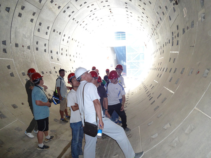 在地铁基坑现场,李总工程师为实践团一行详细介绍了基坑的设计构造,以及具体工件在施工过程中的作用,同学们了解到兰州地铁1号线一期工程全线20座车站,而我们所在的世纪大道站为地下二层岛式结构,印入眼帘的宏伟施工现场使同学们感到深深的震撼。随后,李总工程师带领大家来到地下十三米深的地铁站台实地参观地铁隧道,他向同学们着重强调了测绘测量工作在整个基础建设过程中的重要性,并指出作为一个测地工作者如果没有精益求精的工作态度,那将会对施工建设造成重大的破坏,造成难以弥补的经济损失。听了李总工程师的谆谆教诲,同学们纷纷表示,在以后的学习和工作过程中一定严格要求自己,提升专业素养,一定做到“测无不准、放无不精”。