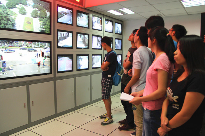 座谈会后,王处长带领同学们参观了保卫处监控室,对校园安全技防设施进行了介绍,并和我院部分贫困学生在学生食堂共进午餐,就安全、节约用餐进行了交流。