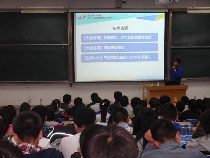 北京超图软件股份有限公司技术人员了目前全球GIS技术的最新发展情况,提出3S时代真正的价值在于“信息集成”,并就“SuperMap杯”GIS大赛的相关流程进行了详细介绍和技术指导。在提问环节,同学们踊跃与技术人员交流,请教与竞赛相关的问题,均得到了详细解答。