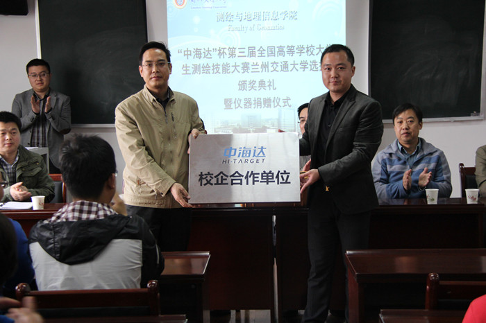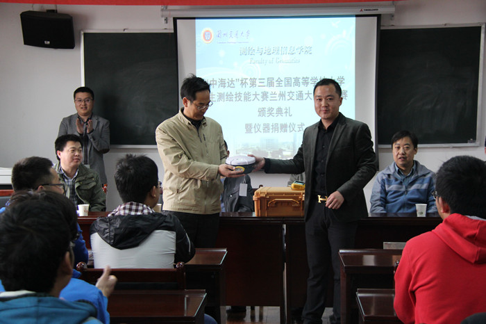 4月3日下午,“中海达杯”第三届全国高等学校大学生测绘技能大赛兰州交通大学选拔赛颁奖典礼暨仪器捐赠仪式在测绘与地理信息学院学术报告厅隆重举行。广州中海达卫星导航技术股份有限公司兰州分公司总经理崔寒,测地学院书记李仲勤、副院长韩峰,以及学校教务处、实验室管理处、校团委相关负责人出席了本次活动。