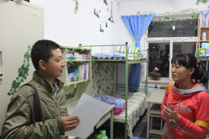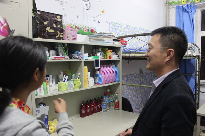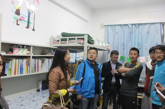 19点30分,我院全体辅导员、班主任和学生干部准时在学院楼下集合,简单的分配任务后,师生们兵分几路,有针对性的对分布于桃海、东方、校内的各个学生宿舍开展检查。在巡查过程中,老师们仔细检查了每个宿舍的卫生状况,还特别向各宿舍强调了宿舍安全用电的问题,针对发现的安全隐患提出了整改措施。同时,老师们还对正在举行的“宿舍文化节”之宿舍装饰活动进行了评分,选出参加“宿舍文化节”比赛的宿舍代表。整个巡查过程气氛融洽,更像是一次增强我院师生联系的交流会。老师们亲切关心的询问,学生干部一丝不苟的检查,全院全体学生的积极配合,使得此次宿舍检查工作顺利开展并取得了预期的效果。