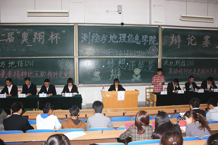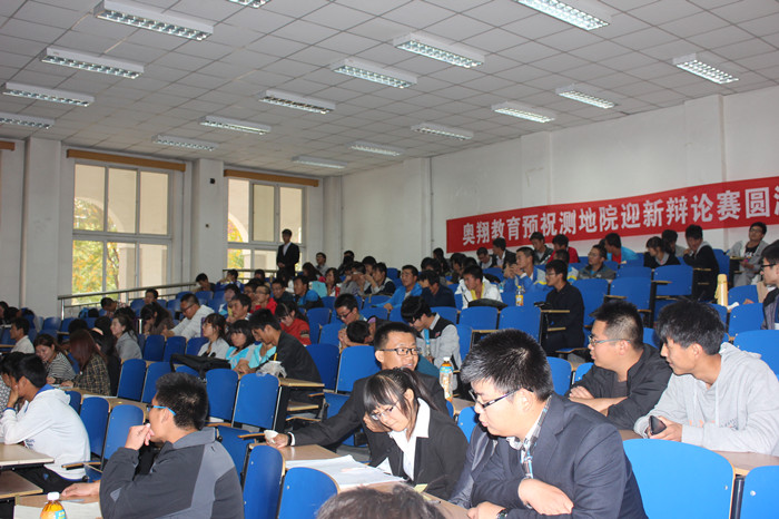 2013年10月14日下午,在五教2202教室,测绘与地理信息学院举办的测地学院“奥翔杯”第二届迎新辩论赛在众多新同学的期待下正式开始,辩论赛旨在锻炼同学的逻辑思维和团队合作意识,测地学院成立以来,辩论赛也不断地将测地学院这个年轻学院的风采尽情的展现给每一位参赛选手和到场的观众。