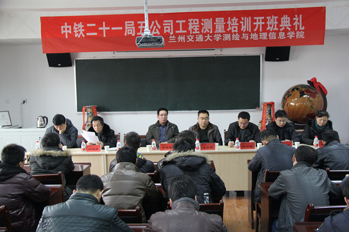 1月6日上午,中铁二十一局五公司工程测量培训班开班典礼在我院学术厅举行。中铁二十一局集团第五工程有限公司总工程师卫永毅 、纪委副书记 刘方晓、工程管理部副部长申国顺、劳动人事部工程师杨兴惠,测绘与地理信息学院书记李仲勤、测绘系主任姚德新、工程测量实验室主任王世杰,以及40余名学员出席了开班典礼。会议由姚德新主任主持。
