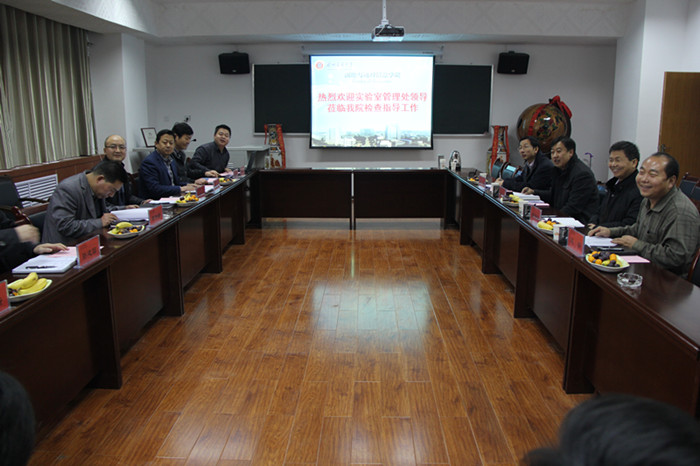 12月11日下午,实验室管理处崔炳谋处长一行4人赴我院调研2012年实验室工作情况,学院全体班子成员和各系室主任参加了会议。会议由韩峰副院长主持。