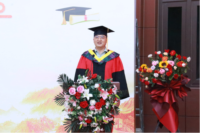 院长闫浩文教授向全体毕业生表达了衷心的祝贺和美好的祝愿。“沉舟侧畔千帆过,病树前头万木春”,闫院长勉励全体毕业生新征程的路上应从容自信面对人生困难,在挫折面前学会自我调节,保持乐观豁达积极向上的状态,以更饱满踏实的精神,去迎接新的挑战,寻找新的发展,创造属于自己的奇迹,立足现实,面向未来,乘风破浪,勇往直前,开拓自己的新天地!
