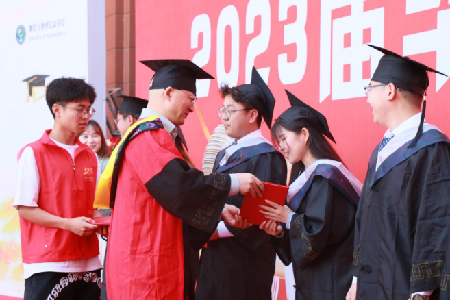生逢盛世,肩负重任;有为青春,不负韶华。6月21日上午,测绘与地理信息学院2023届毕业典礼暨学位授予仪式在笃行楼前广场隆重举行。学院院长闫浩文、教师代表、毕业班班主任、家长代表及全体2023届毕业生参加典礼。典礼由学院党委副书记、副院长郝雪莹主持。