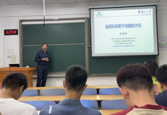讲座内容包括问道、索道、明道、悟道四个方面,杜教授详细阐述了遥感科学与技术发展现状、遥感理论方法应用与选题、遥感科研应避免六大误区以及遥感发展启发的治学态度。
