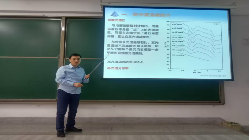 讲座主要从高光谱遥感简介、高光谱图像特征分析与提取、高光谱图像混合像元分解和高光谱图像分类与目标检测四个方面讲解了相关研究进展。首先,高老师通过与传统多光谱比较,从光学遥感技术的发展与什么是高光谱分辨率遥感,引出高光谱遥感的突出特点。进而介绍了高光谱遥感技术在矿产资源调查、城市规划、生态环境、军事等方面的应用。