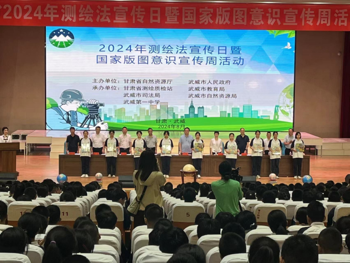 上午9时,武威一中的学子们整齐地坐在会议厅中。学生代表宣读了规范使用地图倡议书,省自然资源厅党组成员、副厅长周文魁发表讲话,并宣布2024年全省测绘法宣传日暨国家版图意识宣传周活动正式启动。随后,向武威第一中学赠送了地球仪、书籍、地图等学习用品。