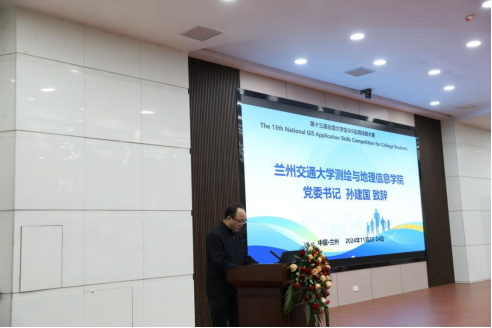 聂磊在致辞中向大会嘉宾和参赛师生表示热烈的欢迎,然后回顾了兰州交通大学的历史沿革、办学特色及取得的成就,介绍了测绘地理信息学科近年来在教学和科研等方面取得的进展,并预祝本次大赛取得圆满成功。