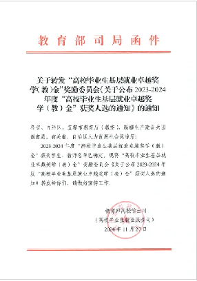 据悉,“高校毕业生基层就业卓越奖学金”是由教育部高校学生司、教育部学生服务与素质发展中心共同指导,中国长江三峡集团有限公司出资,中国教育发展基金会特设,旨在贯彻落实党中央、国务院关于引导和鼓励高校毕业生到基层就业的决策部署,奖励赴基层就业创业并作出突出业绩的普通高校毕业生及就业服务工作教师。今年,全国共有398名优秀高校毕业生获得奖励。