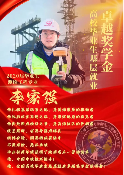 近日,全国“高校毕业生基层就业卓越奖学金”2023—2024年度获奖名单揭晓,我院测绘工程专业毕业生李家强荣获该奖励。