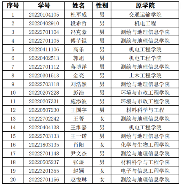 由基地班面试小组对报考学生进行面试,在综合考虑高考成绩和面试表现的基础上最终遴选出20位同学。现将2022级地理信息科学基础学科拔尖学生培养基地班录取学生名单公示如下。如对选拔结果有异议,可通过电话或电子邮件方式实名反映情况和问题。