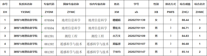 测绘与地理信息学院根据学校《关于2024届本科毕业生推荐免试硕士研究生工作安排的通知》及《关于做好2024届推免名额分配及报送推免结果的通知》等相关文件规定,经学院推免工作领导小组讨论研究,现将推免结果公示如下,公示期间如对结果有异议,请到学院教务办(笃行楼1618)反映,联系电话:0931-4957216。