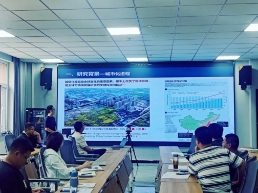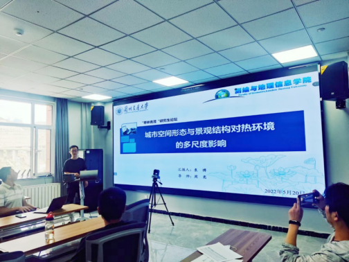 袁博作了题为《城市空间形态与景观结构对热环境的多尺度影响》的报告。报告从研究背景及进展、三个实证研究和未来研究展望五个方面进行了汇报。