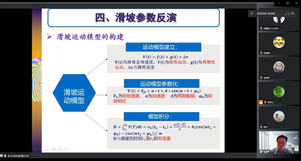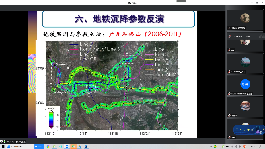 接下来,李教授从冻土参数反演、采空区几何参数反演、滑坡参数反演、冰川跃动参数反演、地铁沉降参数反演及火山地震参数反演六个方面详细介绍了InSAR技术如何于服务科学或工程应用。