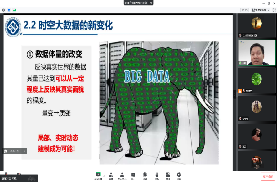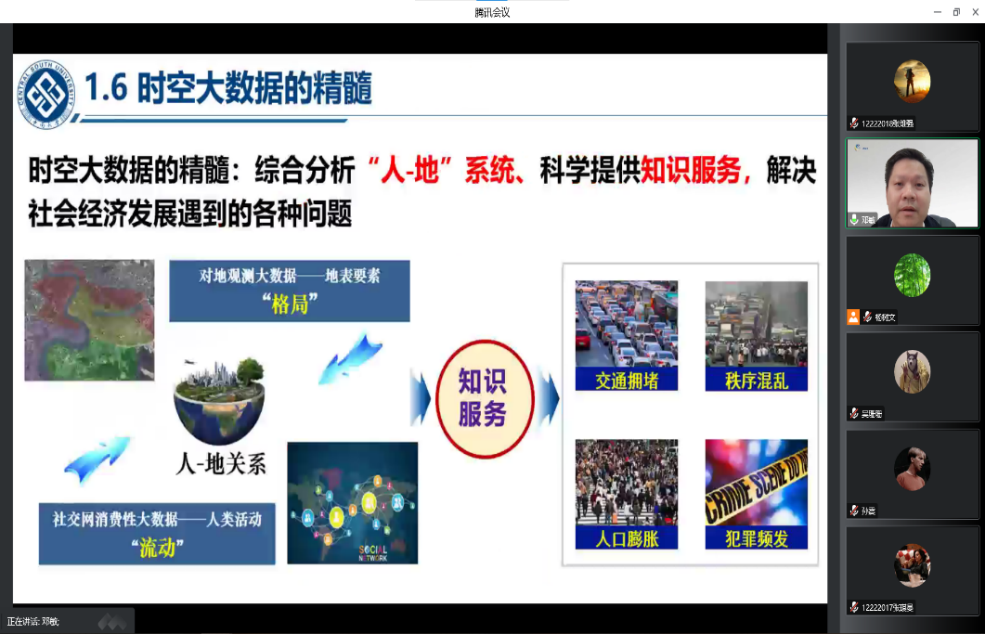 此次讲座不仅让师生们全面地了解了时空大数据的概念、研究进展和目前研究的热点、难点等问题,而且为研究生、老师的科研提供了思路和建议。