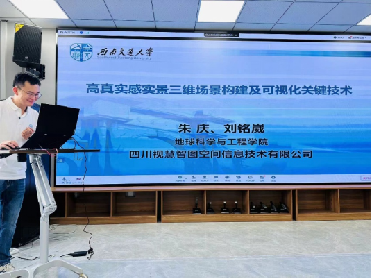 西南交通大学朱庆教授为项目关键技术及其在国家重点研发计划项目“****工程及沿线区域全生命周期数字孪生技术”中的应用进行了深入分析和指导;西南交通大学刘铭崴博士作了题为“高真实感实景三维场景构建及可视化关键技术”的学术报告;西南交通大学付萧博士针对“基于数字孪生的 TBM 施工过程信息多视图协同研判可视分析关键技术”进行了详细阐述,并结合项目的关键技术进行了深入交流与指导。