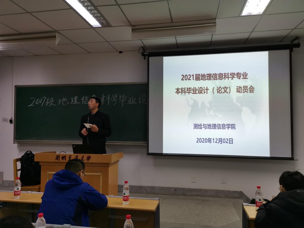 12月2日,我院地信系在1教134教室举行了“2021届地理信息科学专业本科毕业设计( 论文) 动员会”。参会人员包括2021届地信专业41名学生及张黎明、杨军、王中辉、朱睿、周亮、牛磊、金江磊、禄小敏、王强等指导教师。