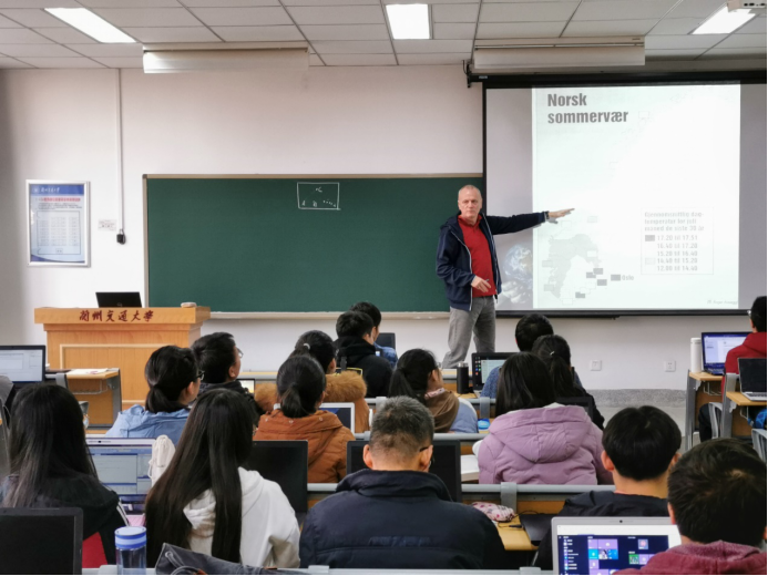 本次授课Terje Midtbø教授首先对挪威科技大学进行了简单的介绍,随后以古代的地图为切入点,循序渐进地为同学们讲述了地图的起源、地图的构成以及各种要素在地图表达中起到的作用。本次授课虽时间不长,但内容丰富多彩,引人入胜,得到了广大师生的热烈讨论与赞赏。