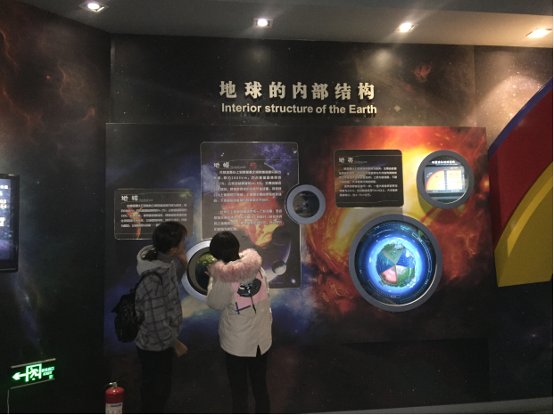 地球厅:主要介绍地球在宇宙中的位置和地球的概况。重点展示地球的形成、演化和圈层结构,以及内外动力地质作用下地球上发生的各种地质现象。