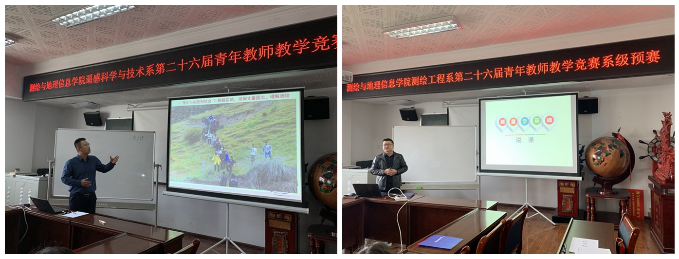 本次系级预赛由各系主办,学院教务办协办。教学竞赛共分测绘工程系、地理信息科学系、遥感科学与技术系三个组别进行。各组评审组由学院领导小组成员1人、教授及校级决赛获奖教师代表等4人共5人组成,并设秘书1人;教务办负责全程视频录像,并做好了巡视工作。
