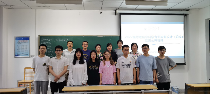答辩工作伊始,张黎明老师宣读了答辩工作相关注意事项并对我系2022届毕业生给予衷心祝愿。答辩现场秩序井然,气氛浓厚,34名随机抽选的校院级公开答辩同学的毕业论文涵盖了GIS系统开发、算法设计、空间分析、工程应用等多个方面,逐步实现了本科毕业论文向多元性、前沿性、挑战性的发展。各位答辩委员从研究思路、写作规范、工作态度等几个方面对同学们的论文进行点评和提问,对论文的亮点和创新点给予了充分的肯定,对不足之处给出了中肯准确的修改意见。参加答辩的同学精神饱满、沉着自信,以最佳状态展示自己的论文成果,也虚心吸收答辩委员们提出的改进建议。6月6日上午,其余9名同学以同样的方式在笃行楼1605会议室进行了小组答辩。最后,答辩主席对诸多答辩委员以严谨的态度、尽心尽责地完成本次毕业答辩表示衷心感谢,并祝各位同学前程似锦、硕果如玉。