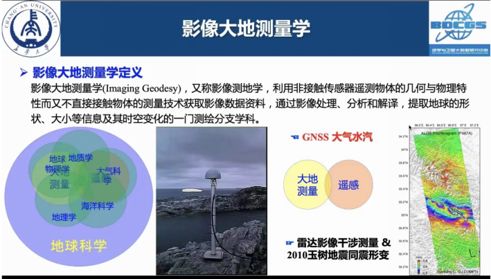 李振洪教授首先结合自己二十多年的求学和工作经历将遥感和大地测量结合起来科学地阐述了影像大地测量学的定义,在此基础上,引用“星-空-地一体化”理论和“2010玉树地震同震形变”案例,深刻论证了大地测量与遥感“你中有我,我中有你”的关系。