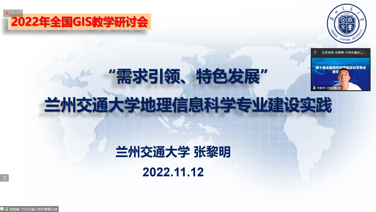 2022年11月12日,我院闫浩文院长、刘涛副院长和张黎明主任在线参加了由成都理工大学承办的第十届全国高校地理信息科学专业教学研讨会,并在三个专题研讨会分会场受邀作了报告。