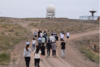 7月12日,从兰州出发前往首个实习地点:宁夏驭星属陈航天科技有限公司。公司陈总带领师生参观了航天驭星卫星测控指挥中心,了解到研究人员,通过自主研发的国产软件实现商业卫星的数据接收、获得各个卫星实时轨道位置与其运行情况等功能。在中卫遥感卫星定标场,陈总为同学们讲解了卫星定标场中角反射器等定标仪器的结构和工作原理,使同学们对中卫定标场的结构组成和各个部分的功能有了一定的认识和理解。