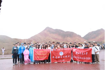 7月14日早上,师生一起前往张掖世界地质公园,园内七彩丹霞奇特而美丽。纵目丹霞地貌群,怪石如林,变化万千,经过亿万年的风蚀和水蚀作用,形成了壮观的地貌景观,数以千计的悬崖山峦全部呈现出鲜艳的丹绝色和红褐色,相互映衬各显其神,展示出"色如渥丹,灿若明霞"的奇妙风采的丹霞地貌。造型奇特,色彩斑斓,气势磅礴,把祁连山雕琢得奇峰突起,峻岭横生,五彩斑斓。在这个早晨,师生们无一不感受到大自然的鬼斧神工。